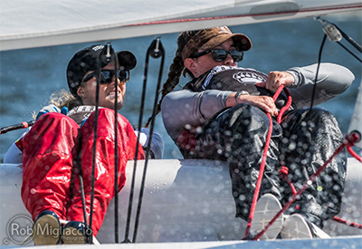 Brown is the reigning Women’s National Champion, winning last year’s main event in big breeze at home in Newport, RI. However, after this victory, at what is the equivalent of the Atlantic Coast Championship in medium to light conditions, Brown proved they are still the team to beat in all conditions.